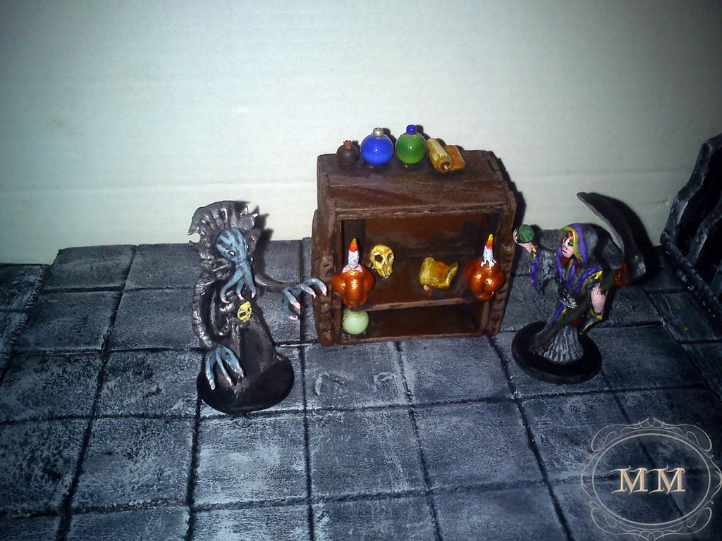 Wykonałem z masy modelarskiej czaszki, zwoje, oraz księgi. Sporo było przy tym zachodu, ale nie żałuję! :D