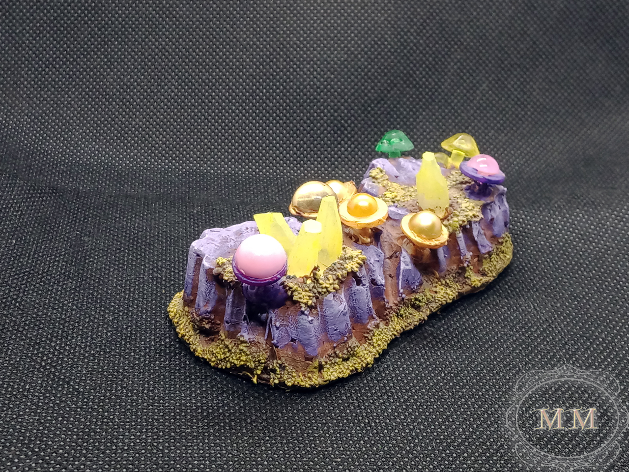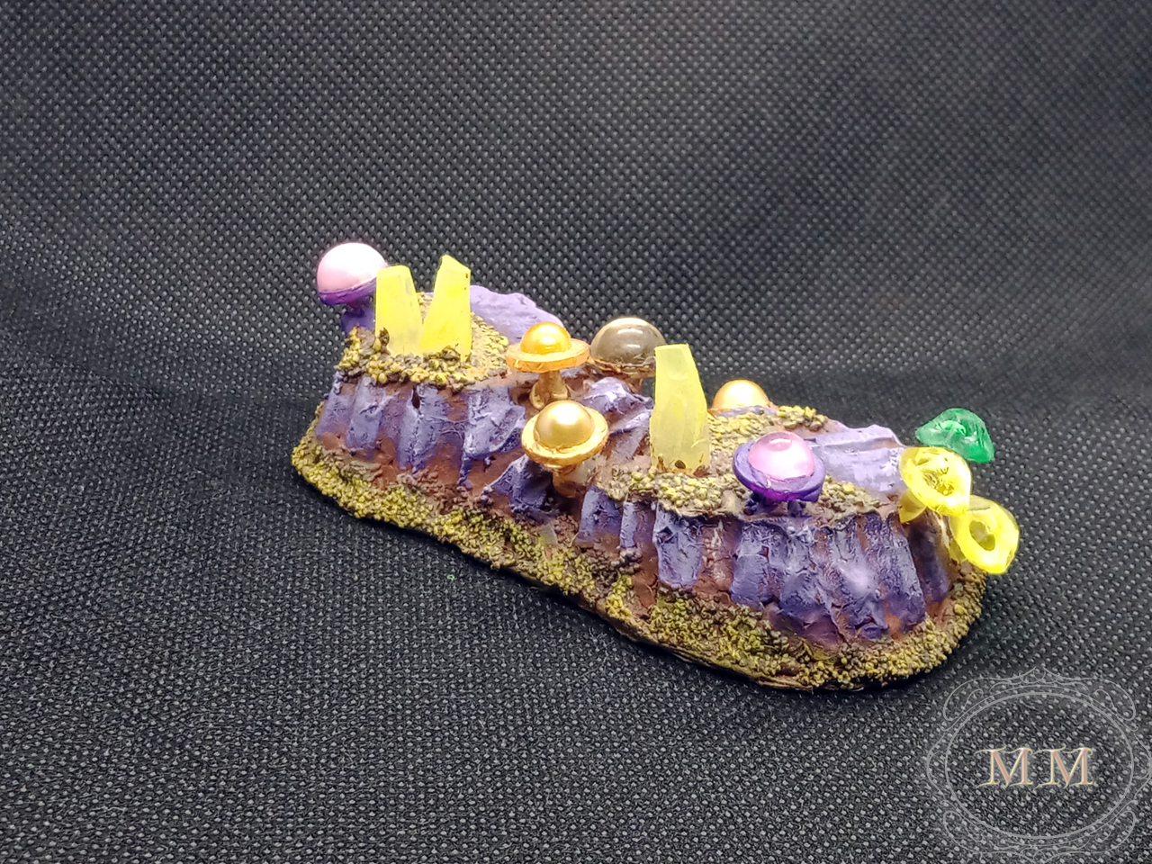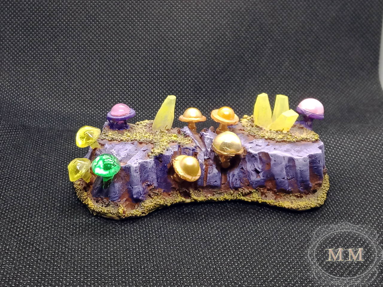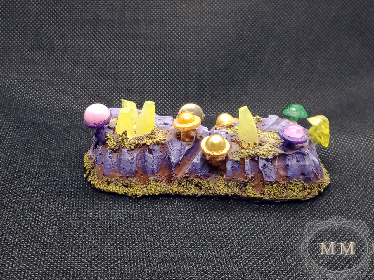 Kryształy wyciąłem z pałeczek do kleju na gorąco, parę grzybków było z gry planszowej dla dzieci, rozpuściłem plastik na nich za pomocą palnika do rozpalania grilla.