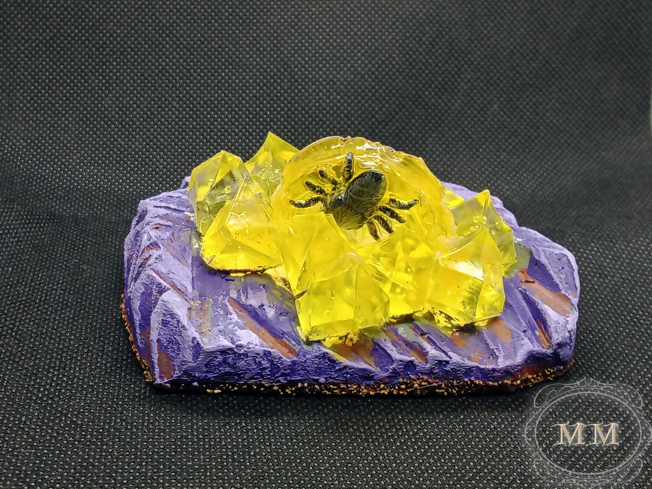 Ponadto znalazłem w azjatyckim centrum zdobione pająki zalane w jakby żywicy, po przycięciu jej wyszedł całkiem niezły kawałek kryształu. Co zaskakujące pasował kolorem do tamtych.