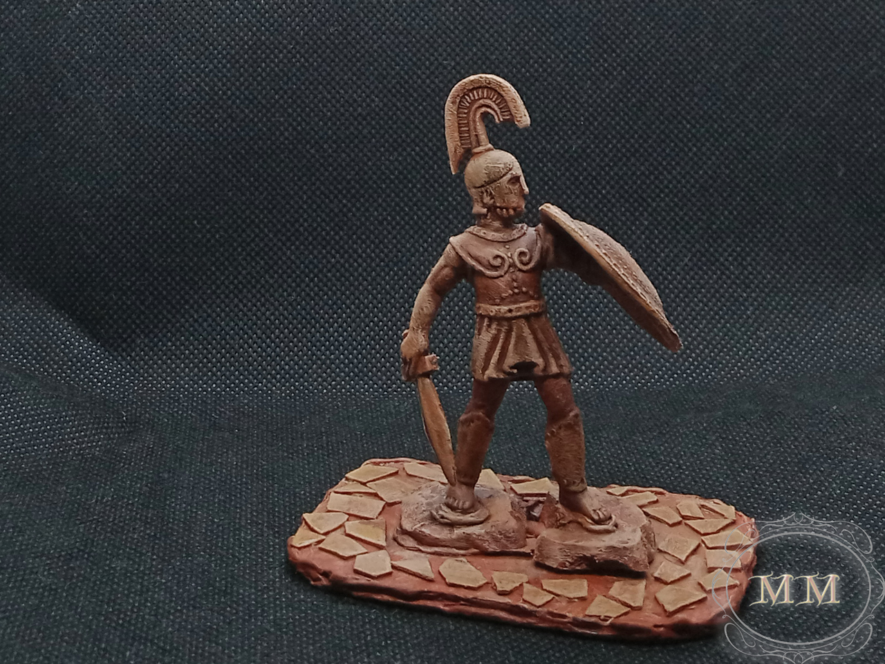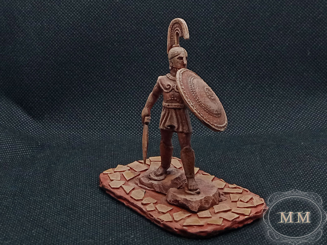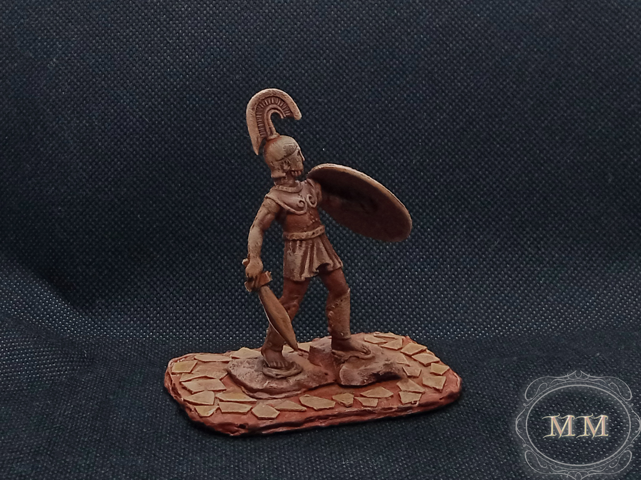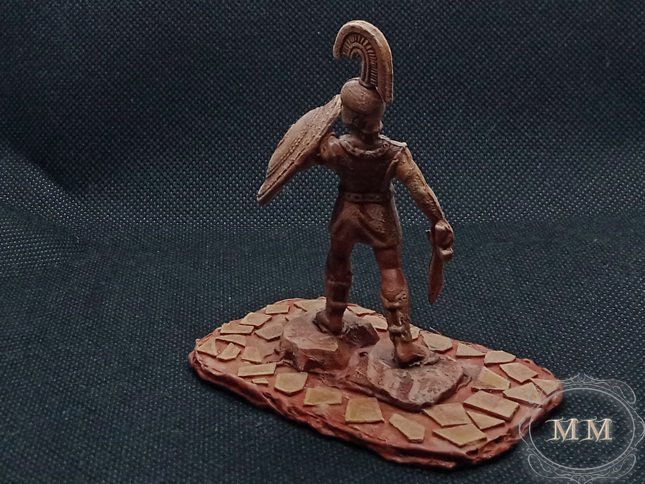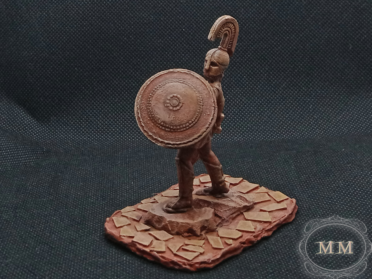 Żeby pomalować tego wojownika, który wygląda niczym ze Sparty musiałem nałożyć kilka warstw brązowej farbki za pomocą techniki suchego pędzla oraz dodałem płukanki z ciemniejszych farbek.