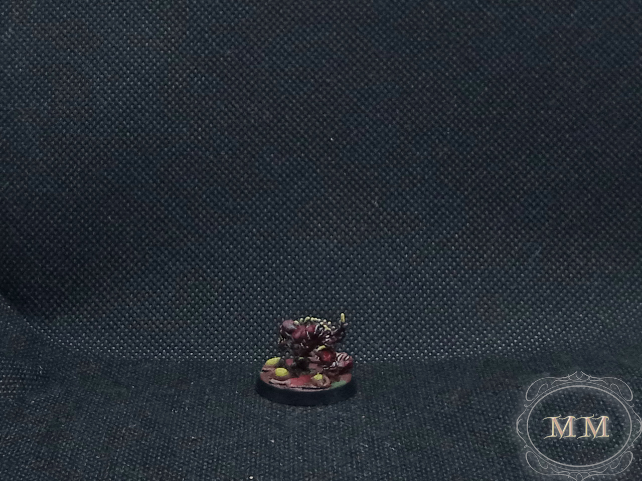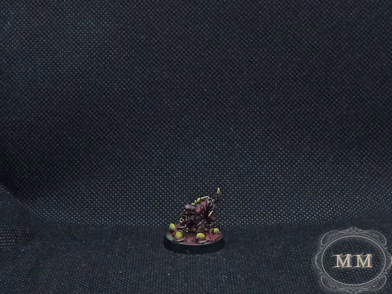 Pomalowałem go na najbardziej mięsiste kolory na jakie umiałem, podstawkę ozdobiłem żółtymi cystami zrobionymi z kleju na gorąco i połówek kulek styropianowych (przy okazji przetestowałem malowanie ropnych bąbli).