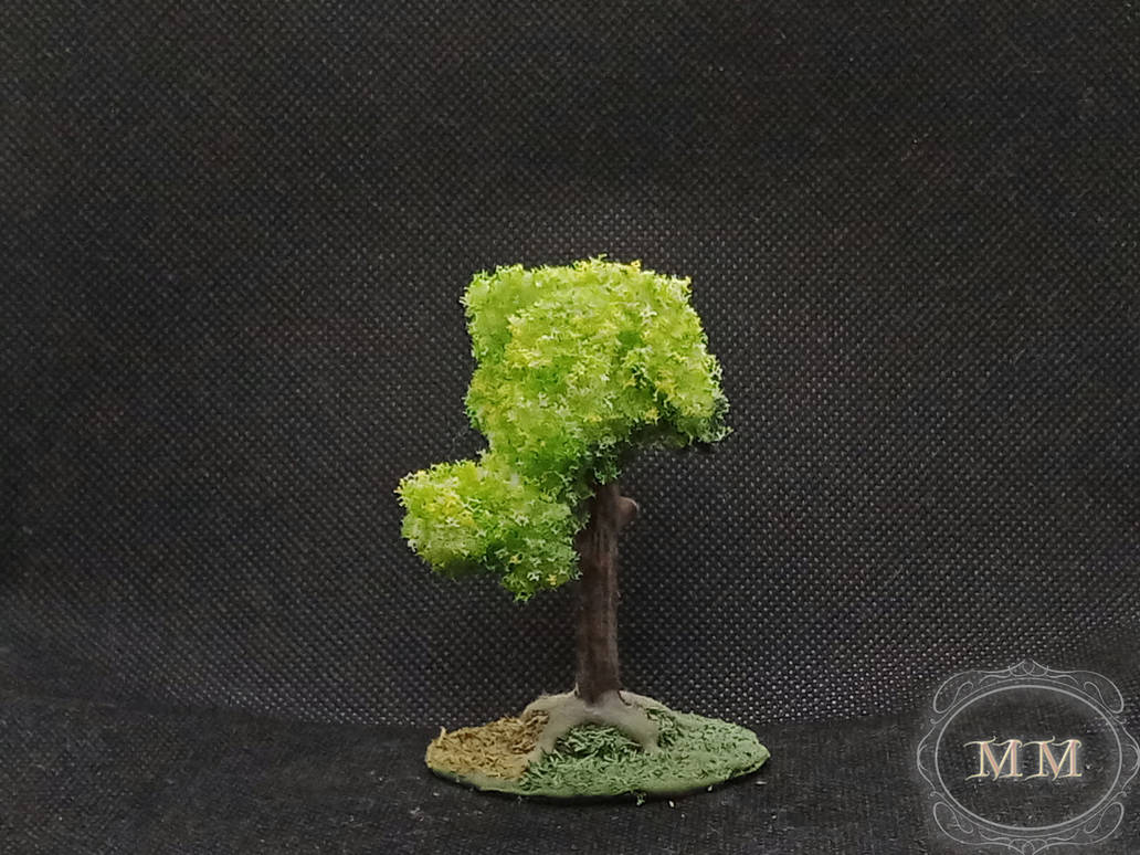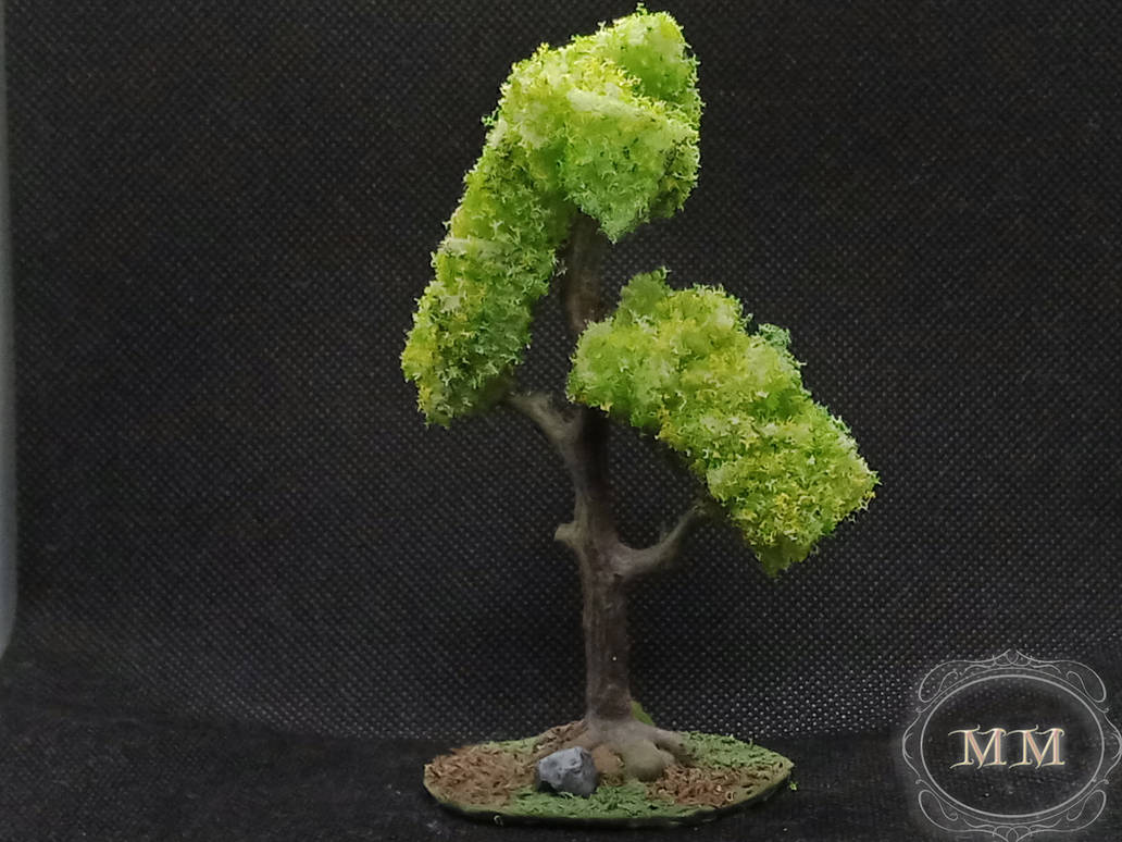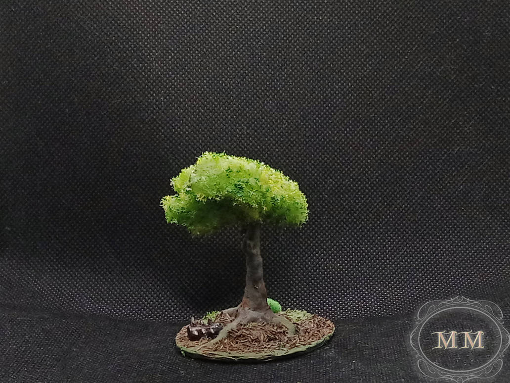 Ich "szkielet" powstał na podstawie plastikowych drzew oklejonych ręcznikiem papierowym z wikolem i pomalowanych na brązowo. Tylko że tutaj był pewien haczyk, na koniec posypałem posypki przesianą posypką z pokolorowanej trociny o różnych zielonych odcieniach. Chciałem żeby nabrało typowo "leśnego" klimatu. Dobra koniec przynudzania, zapraszam do oglądania jak mi poszło. :-)