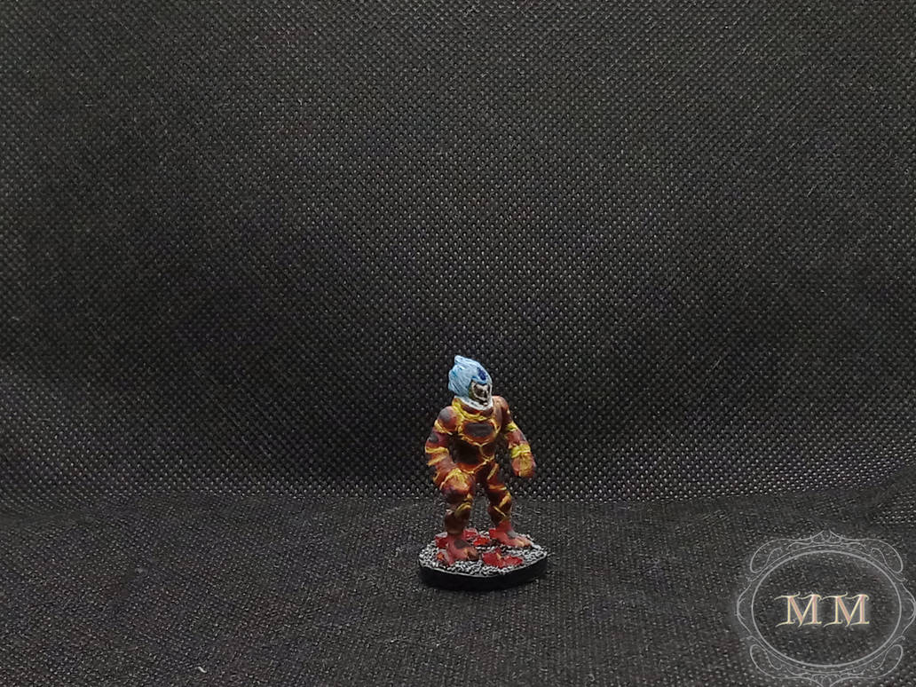 Figurkę zdobyłem na "pchlim targu" - jest to postać Inferno z bajki dla dzieci "Ben 10" - Idealnie pasowała rozmiarem do figurek D&D, więc w sumie pozostało tylko usunąć z piersi znaczek i przemalować, oraz osadzić na podstawce.